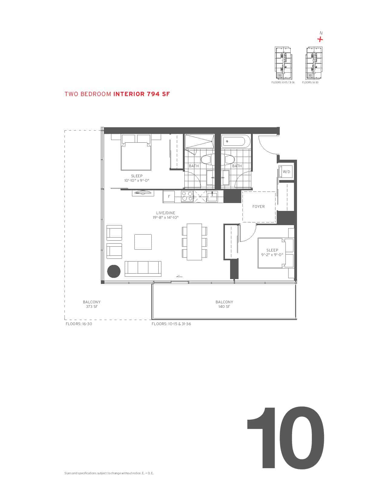 ![]() | 10 | 2 | 2 | 794 | - | 373/140SQFT | S,SW,W | - | Reserve Now |