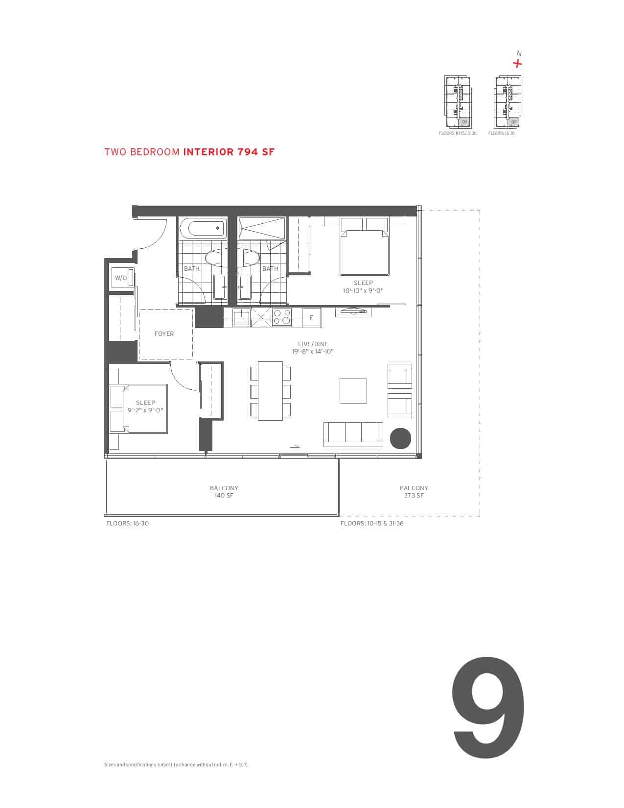 ![]() | 9 | 2 | 2 | 794 | - | 373/140SQFT | S,SE,E | - | Reserve Now |