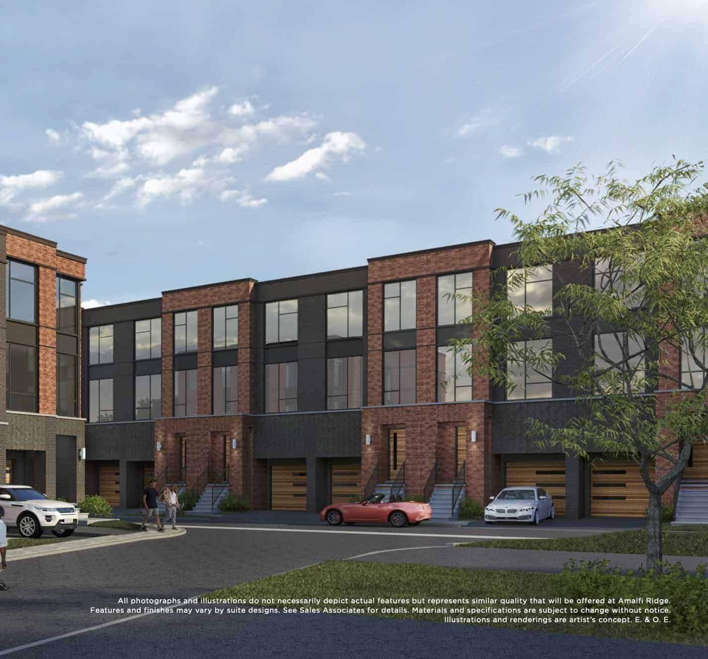 Amalfi Ridge is a new townhouse development by Amalfi Homes. Prices estimated to be starting from $900,000's for these luxury townhomes with modern flair and spacious open-concept interiors. Amalfi Ridge is nearby Humber River which is surrounded by luscious green parks and trails. The project is estimated to be completed in 2022 and will be located on Rolling Hills Lane, Caledon at the Peel neighbourhood in Bolton.