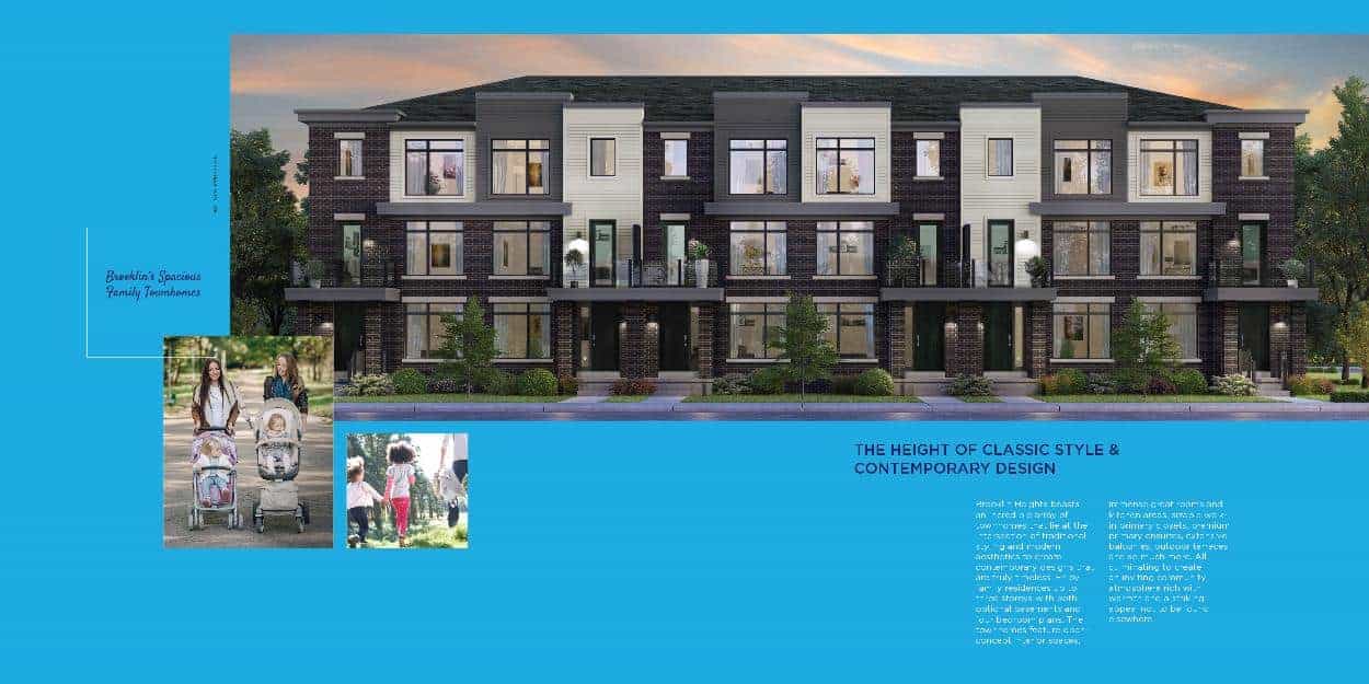 Brooklin Heights is a new townhome development by Sorbara Group of Companies. Prices estimated to be starting from $792,990 - $864,990 featuring 52 units of traditional and terrace townhome collection. Brooklin Heights is nearby the town's most picturesque natural spaces, parks, and Heber Down Conservation Area - a 284 hectare green space perfect for some family leisure time. Easy access to highway 407 & 412, the development is right beside HWY 7 where you will find shops, stores, restaurants, and rec centres. Brooklin Heights is estimated to be completed in 2022 and will be located on Carnwith Drive East & Baldwin Street North at the Brooklin neighbourhood in Whitby.