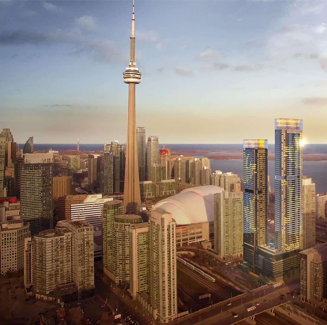 Canada House is a new condo development by Concord Adex. Prices are estimated to be starting from $300,000+ and has a total of 1,400 units at 69 stories. Canada House is estimated to be completed in 2020 and will be located on 23 Spadina Avenue in Toronto. Canada House will also have nearby public parks for the nearby community such as Roundhouse Park and will also include transportation options such as Union TTC Station.