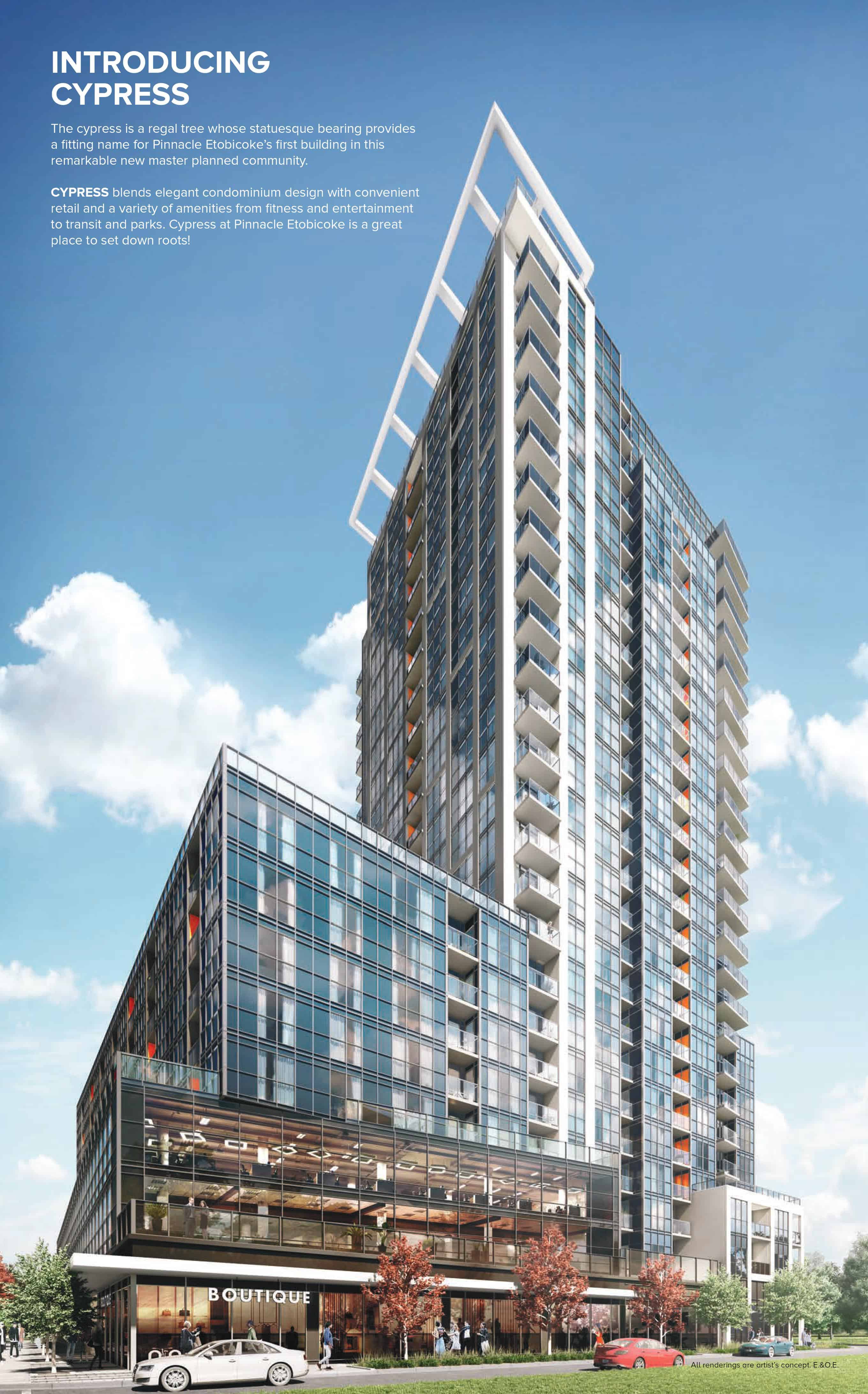Cypress at Pinnacle Etobicoke is a new condo development by Pinnacle International. Prices are estimated to be starting from $350,000+ and the project will feature a total of 274 units at 25 storeys. Pinnacle Etobicoke is estimated to be completed in 2020 and will be located on 5415 Dundas Street West in Toronto.