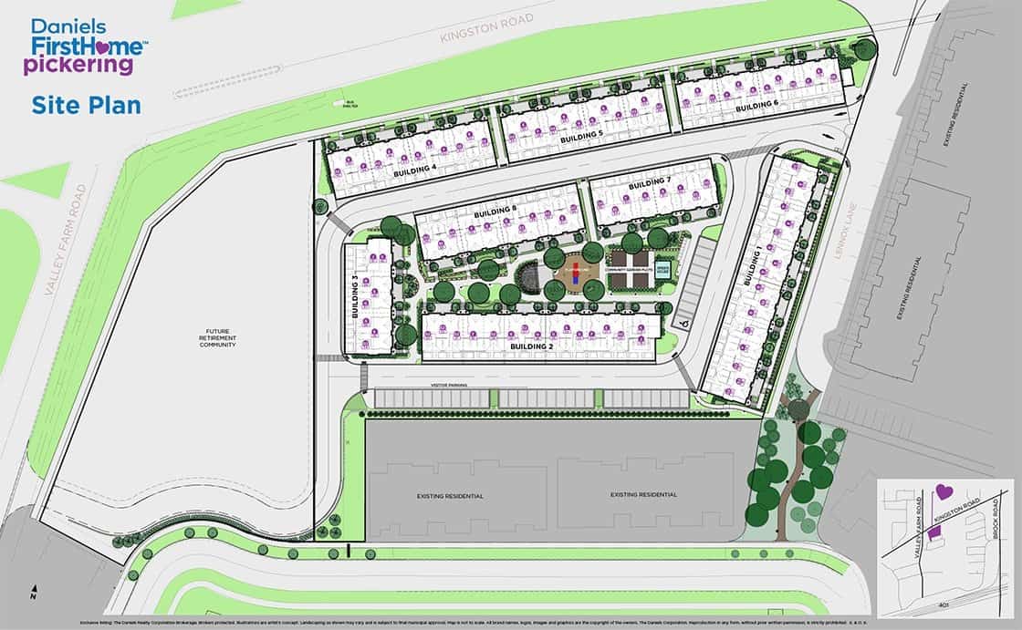 Nestled at the vibrant intersection of Kingston Road and Valley Farm Road, Daniels FirstHome™ Pickering boasts a prime location in Pickering. This dynamic neighbourhood seamlessly combines urban convenience with natural beauty. Situated just steps away from essential amenities and major transit routes, this community offers a well-rounded lifestyle for its residents.