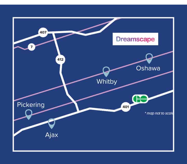 Dreamscape by Fieldgate Homes is ideally located in North Oshawa, offering a prime address that combines the tranquility of a natural setting with easy access to modern conveniences. Situated near the intersection of Conlin Road and Harmony Road, residents of Dreamscape enjoy a highly sought-after location on the border of Courtice.