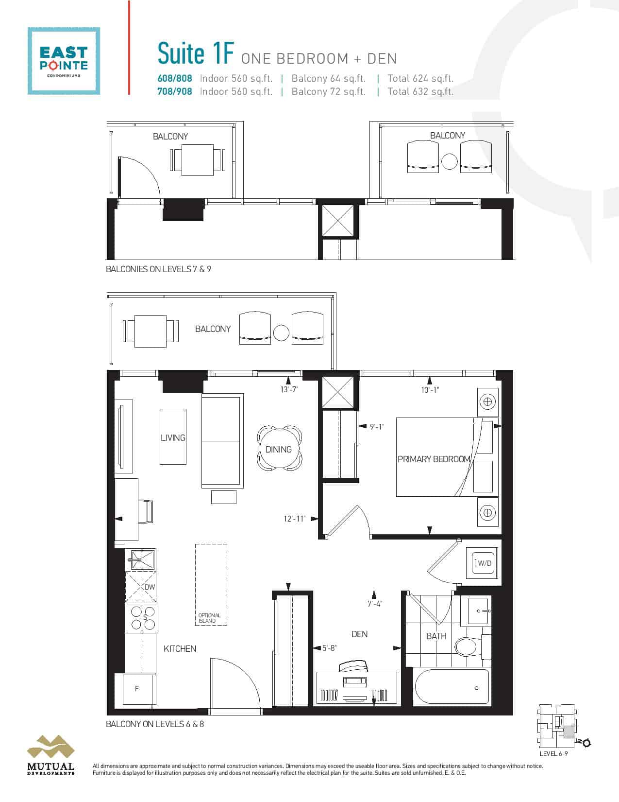 | Suite 1F | 1+ | 1 | 560 | - |