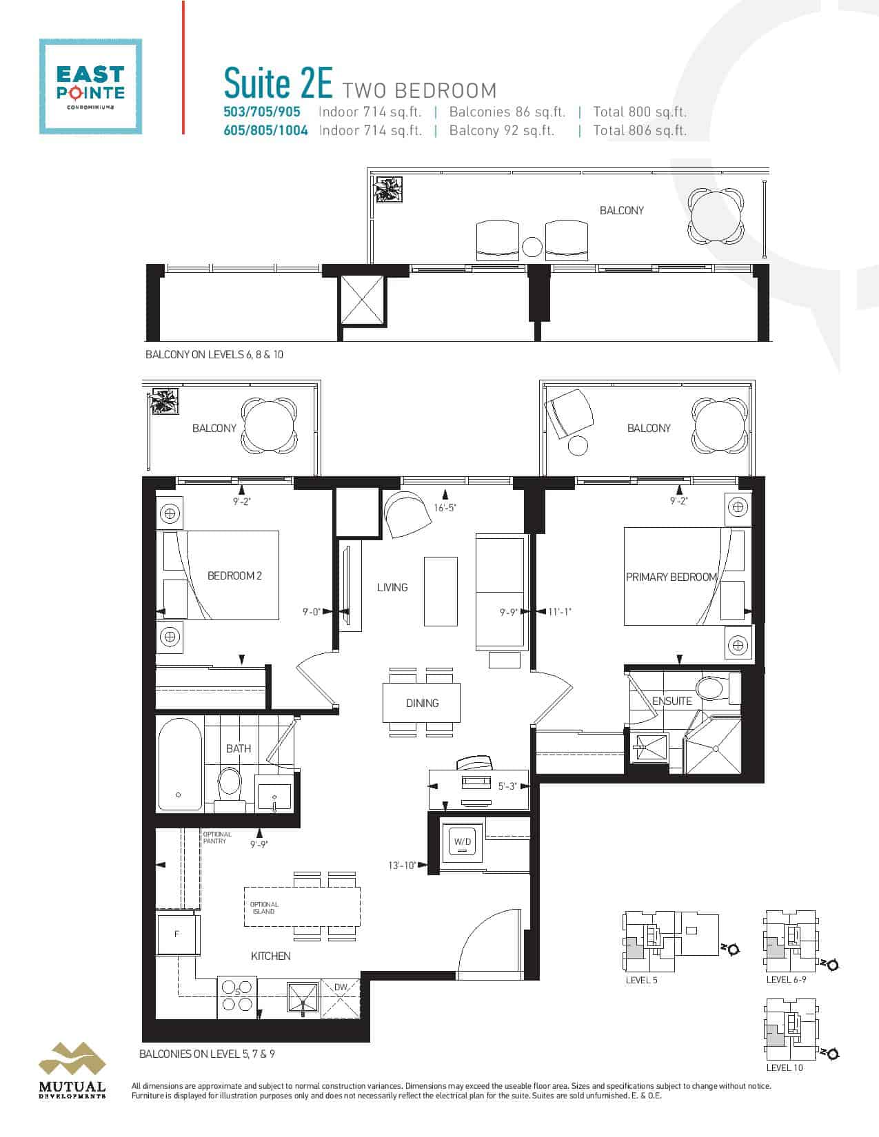 | Suite 2E | 2 | 2 | 714 | - |