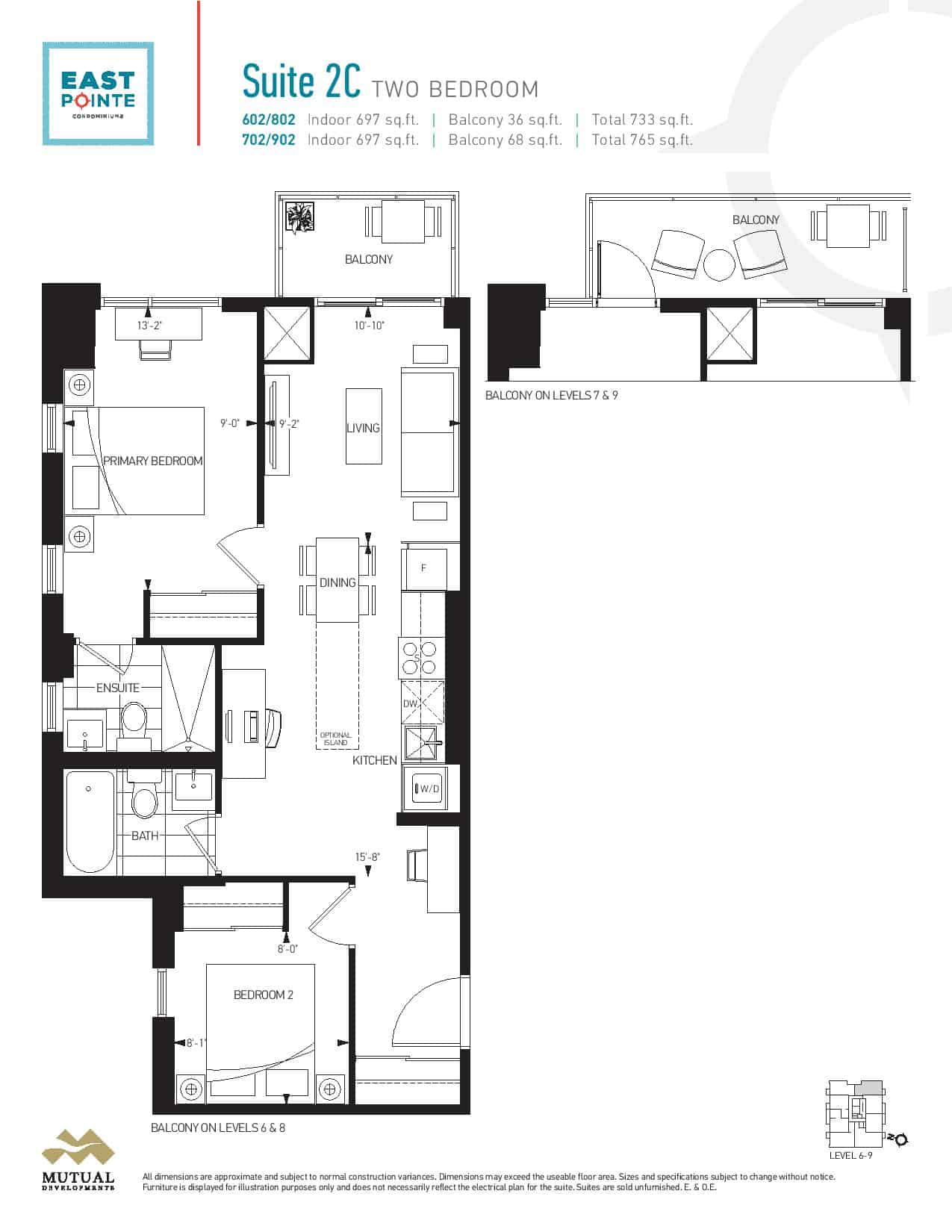 | Suite 2C | 2 | 2 | 697 | - |