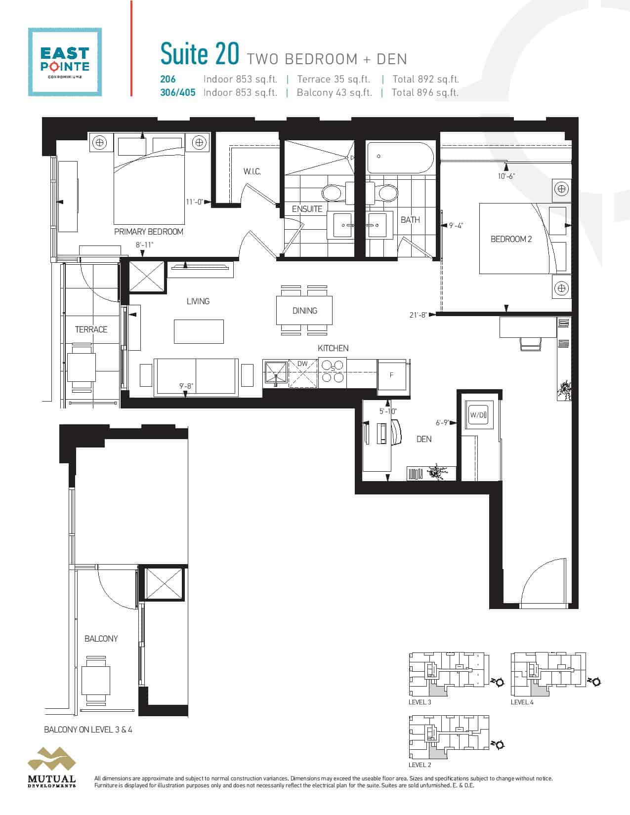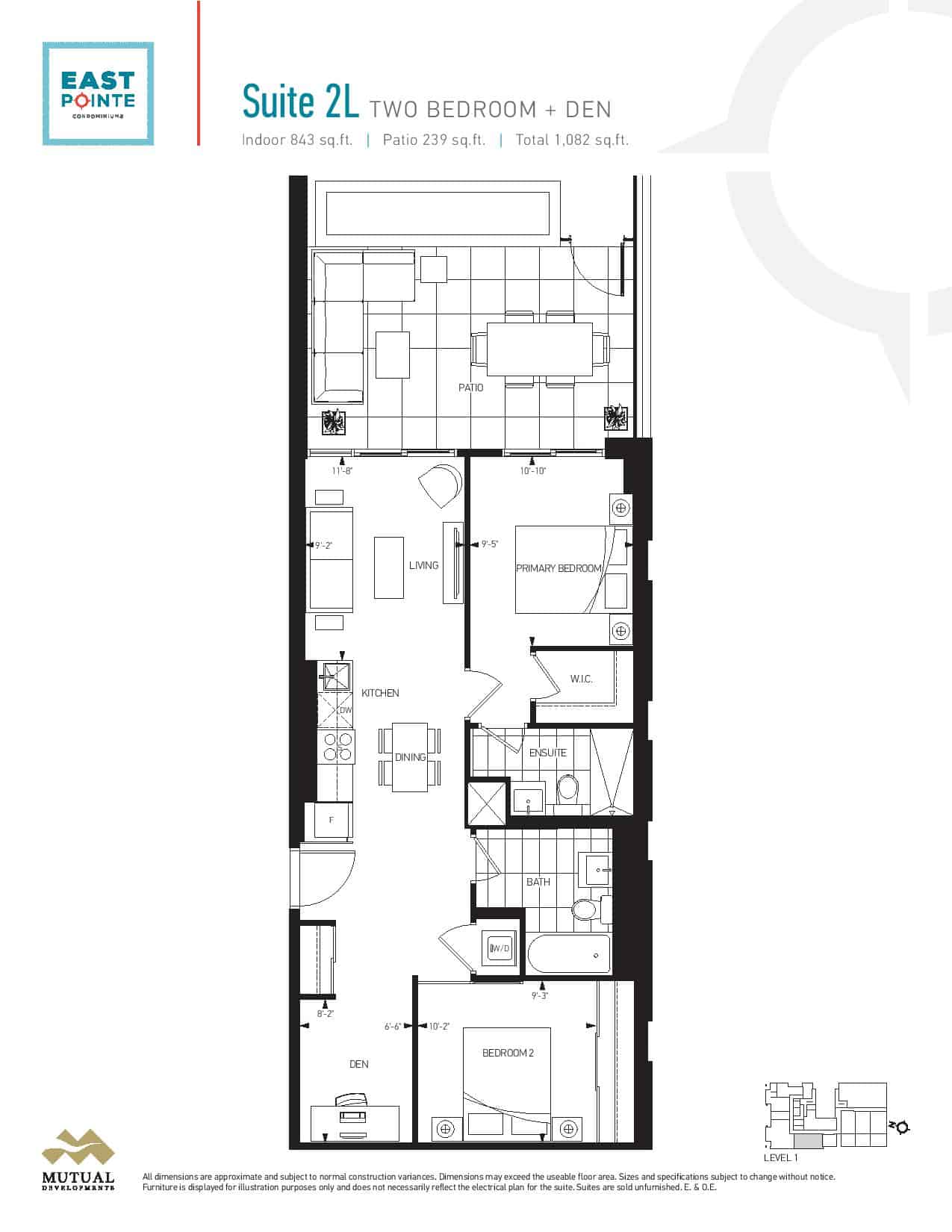 | Suite 2L | 2+ | 2 | 843 | - |
