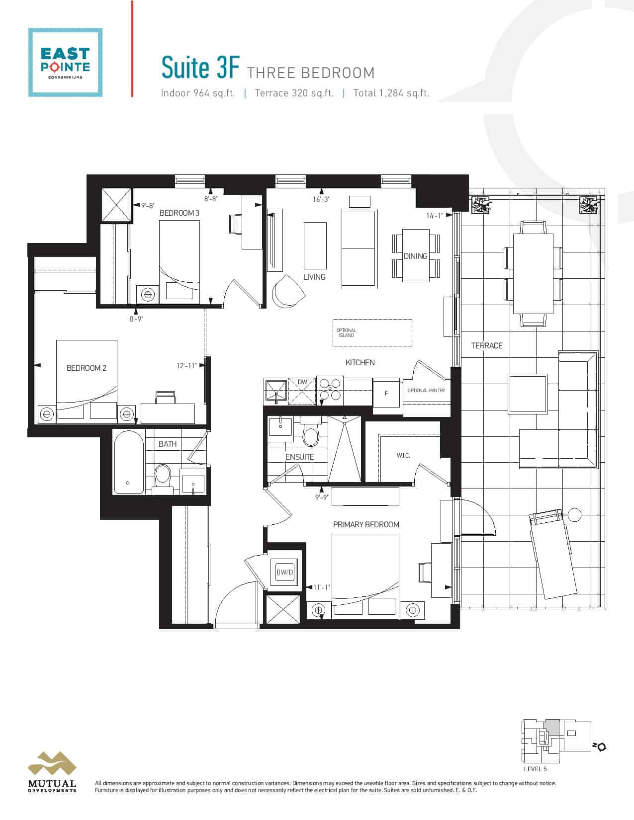 | Suite 3F | 3 | 2 | 964 | - |
