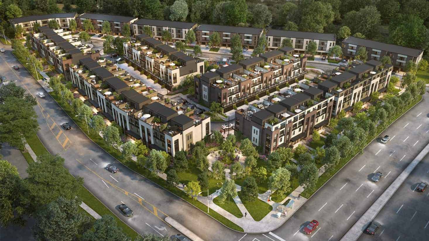 Humberwood Heights is a new back-to-back and freehold townhome development by Tribute Communities. Prices are estimated to be starting at $714,990 - $946,990+. The back-to-back townhomes will include 1-car parking and the 3-storey freehold towns will include 2-car parking with a backyard. Humberwood Heights will also have a total of 138 units. This masterplan community will be near the new revitalized "Woodbine Racetrack Entertainment Hub" which will include retail, office, brand named hotels and entertainment facilities. The area will also have beautiful outdoor walking paths, and over 4,350 parking spaces, creating many more jobs. This development is estimated to be completed Winter 2020 and will be located on 50 Humberwood Boulevard in Etobicoke.