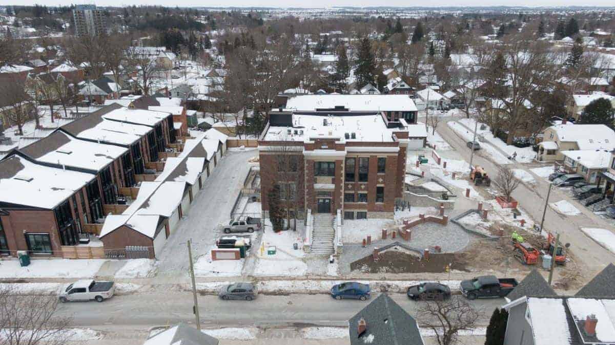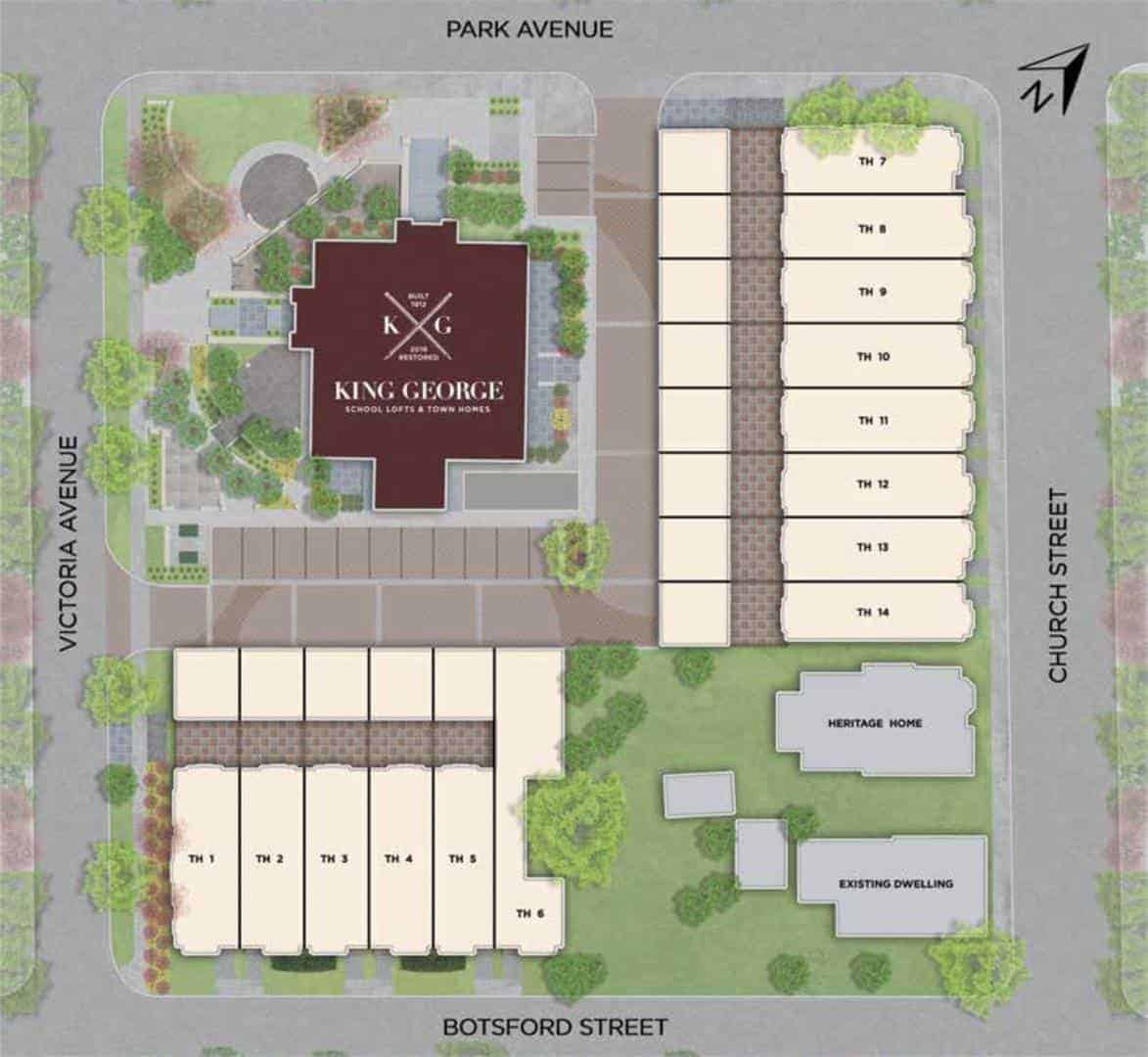 King George Towns is a new condo and townhouse development by The Rose Corporation. Prices are estimated to be starting from $849,900 to over $999,900 featuring 25 freehold town homes in former schoolyard of historic King George Public School. Each unit has a landscaped front yard with covered porch, private rear yard for entertaining with entrance through the living room, two car garage, gas BBQ hook up line + hose bib, sophisticated interior, gourmet kitchen, and luxurious bathrooms. The project was completed on 2020 and is nearly sold out with only two units left. King George Towns is located at 400 Park Avenue in Newmarket.