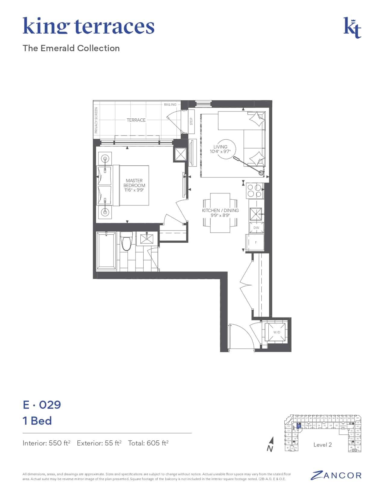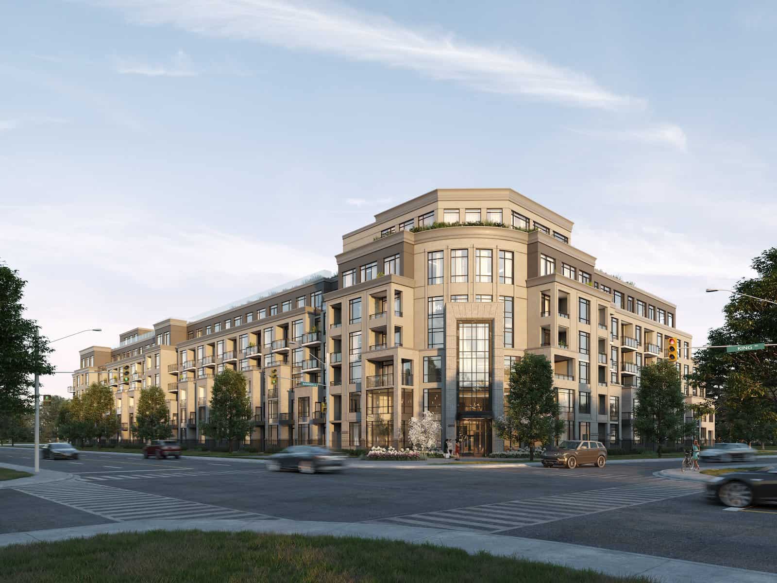 King Terraces is a new mid-rise development by Zancor Homes. Prices estimated to be starting from the high $800,000's and will feature 280+ contemporary units. King Terraces is nearby King City Memorial Park, a small park that's packed with amenities some of them including picnic shelter, tennis court, splash pad, skatepark, and playground. It's also close to the King City GO Station and other city amenities such as King Twp Museum, King City Public Library, Coppa's fresh market, Starbucks and many more. The project is estimated to be completed in 2025 and will be located on 2075 King Road at the King City neighbourhood in King City.