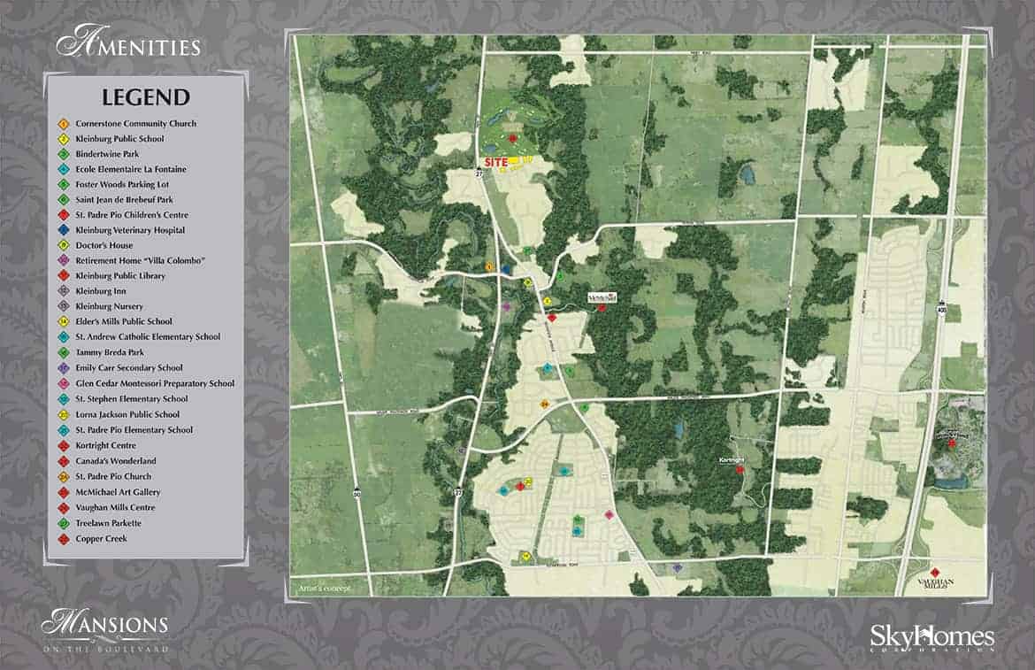 Mansions on the Boulevard is minutes to McMichael Canadian Art Collection, Copper Creek Golf Club, Kleinburg Village where you will find local shops & restaurants and Boyd Conservation Park. Mansions on the Boulevard is 18 minutes away from the Vaughan Metropolitan Centre (VMC) and HWY 27, 427, 407 and 400. The project is estimated to be completed in 2022 and will be located on The Boulevard at the Kleinburg neighbourhood in Vaughan.
