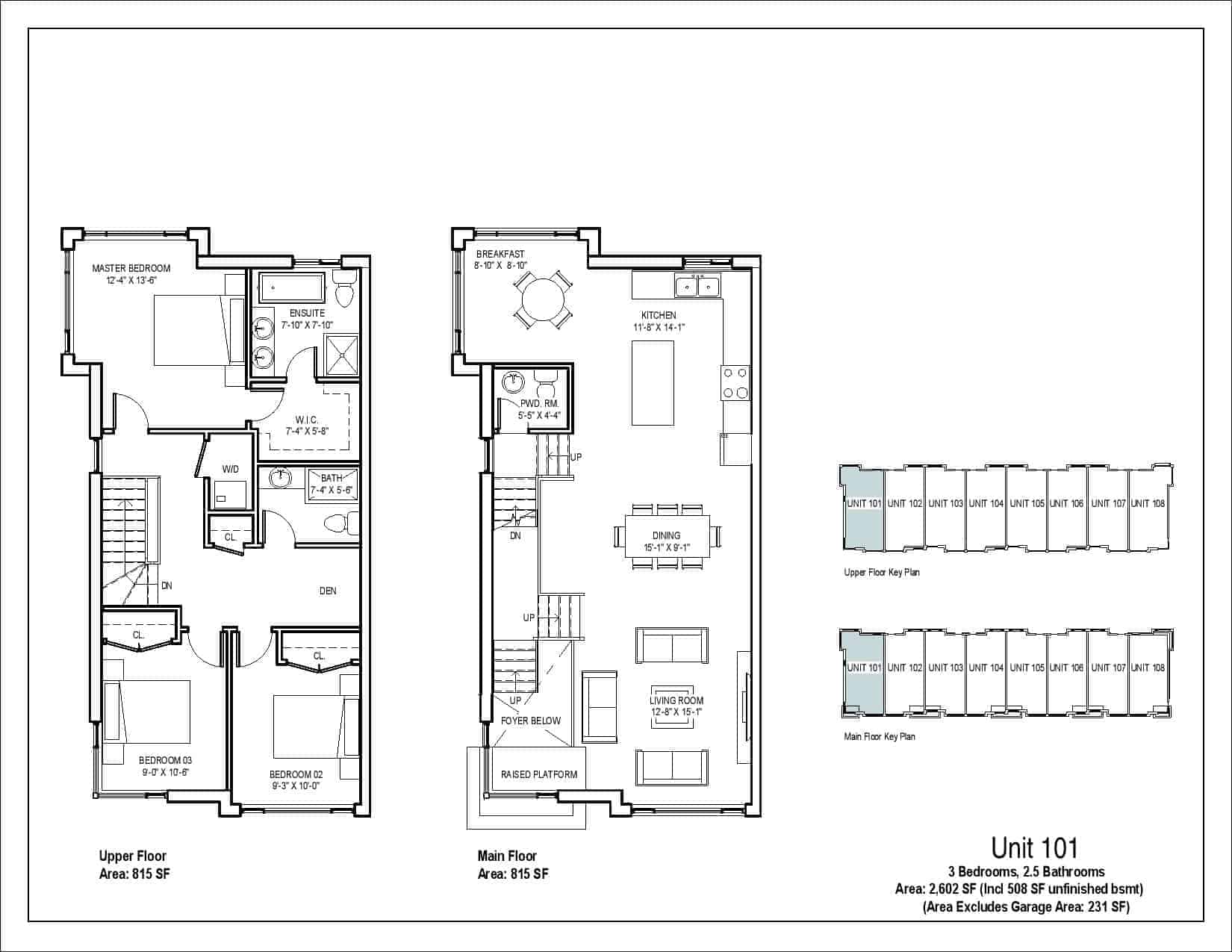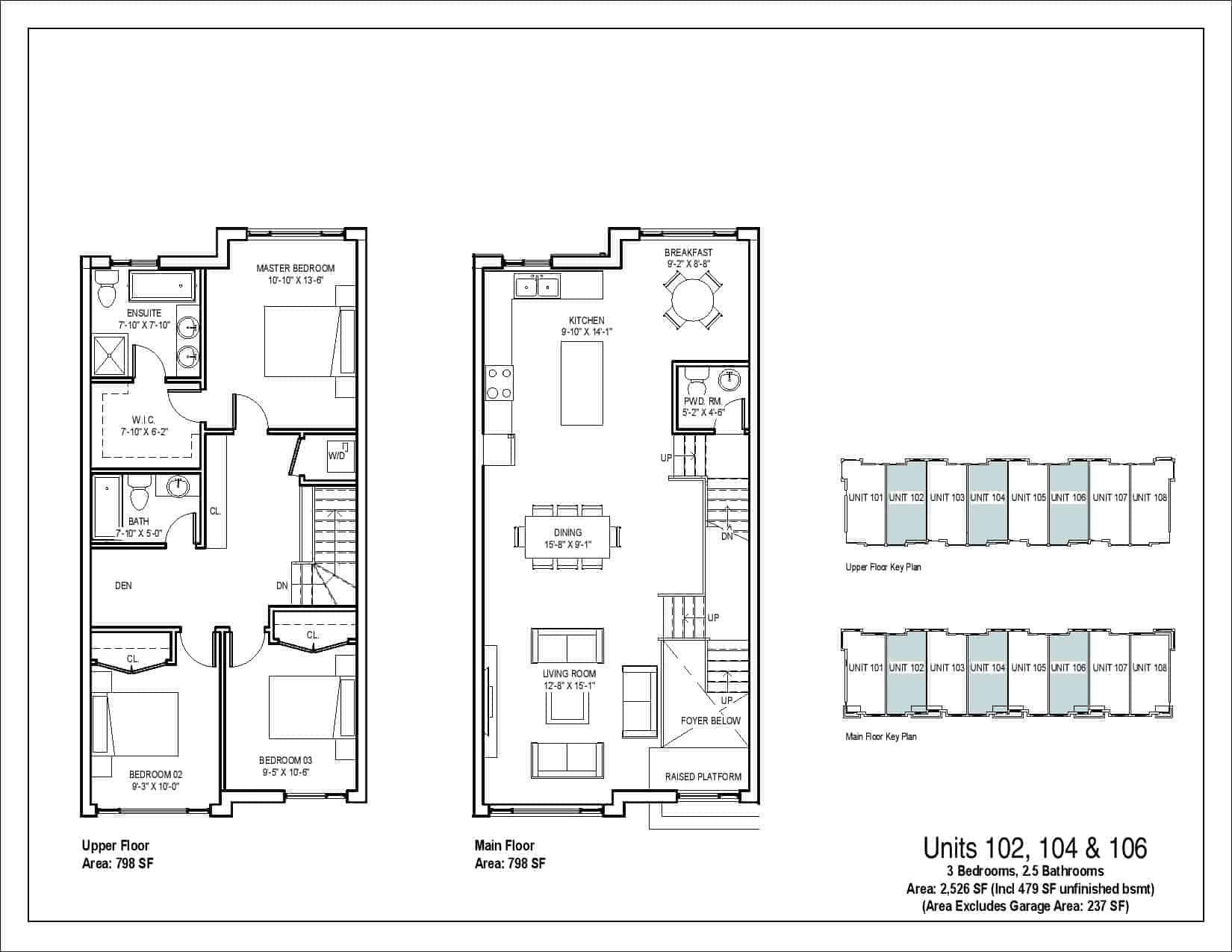| Unit 102, 104 & 106 | 3 | 2.5 | 2,526 | - |
