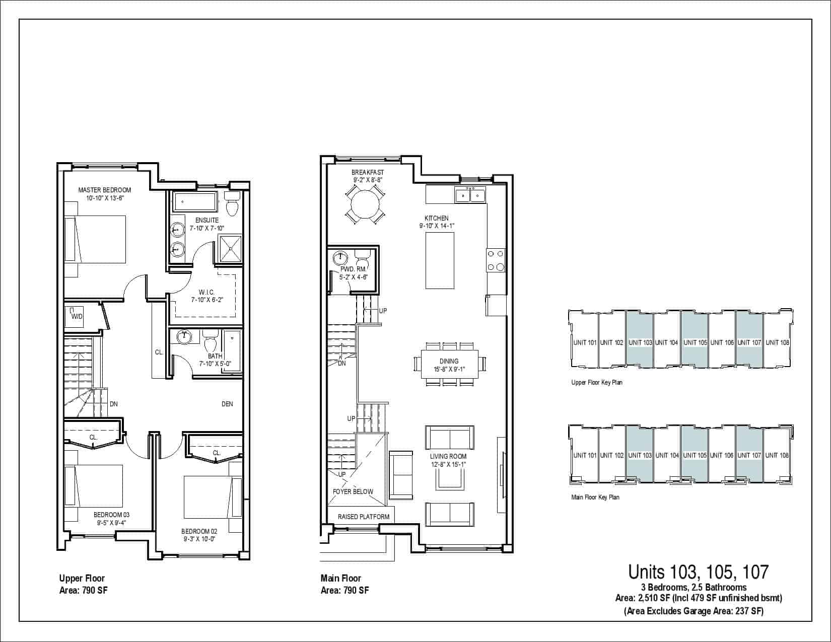 | Units 103, 105, 107 | 3 | 2.5 | 2,510 | - |
