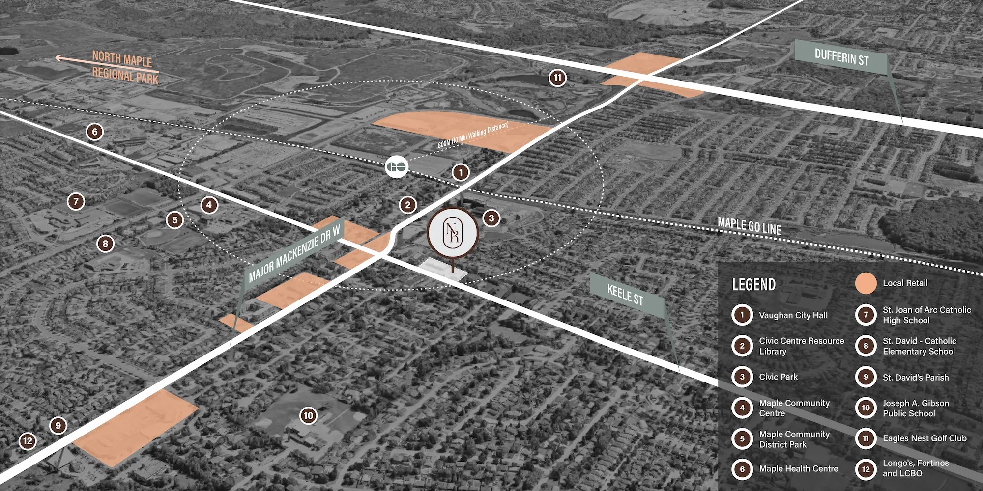 Noble Residences is ideally located at the intersection of Keele Street and Major Mackenzie Drive in Historic Maple. This prime location offers residents easy access to a variety of amenities and attractions, making it a highly sought-after address in Vaughan.