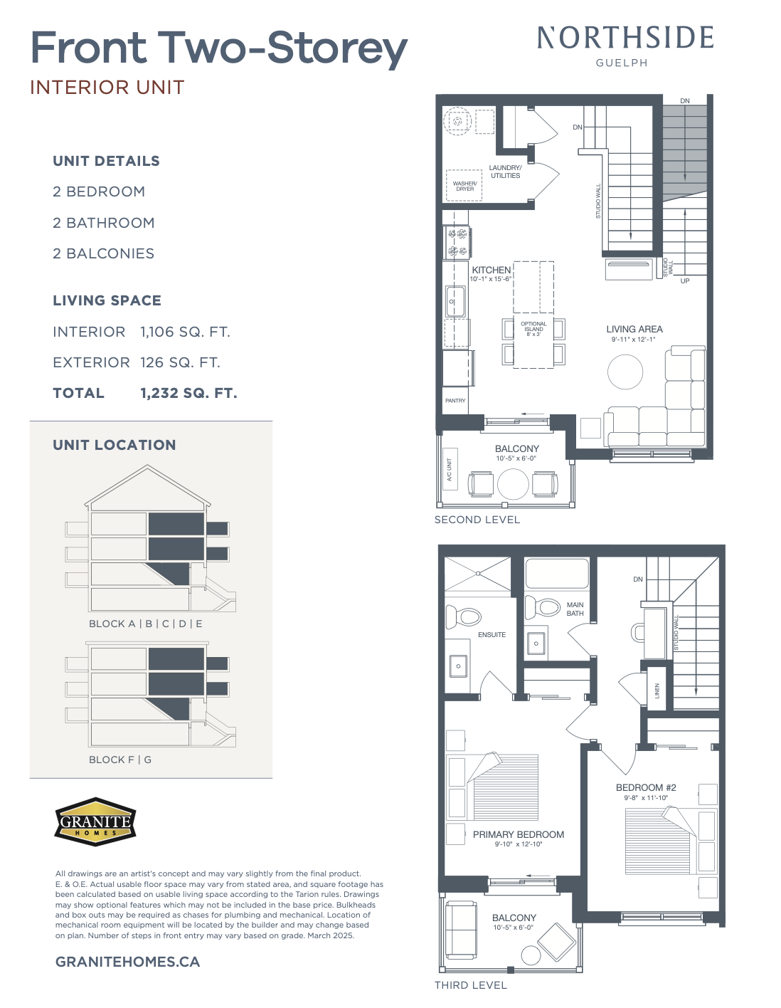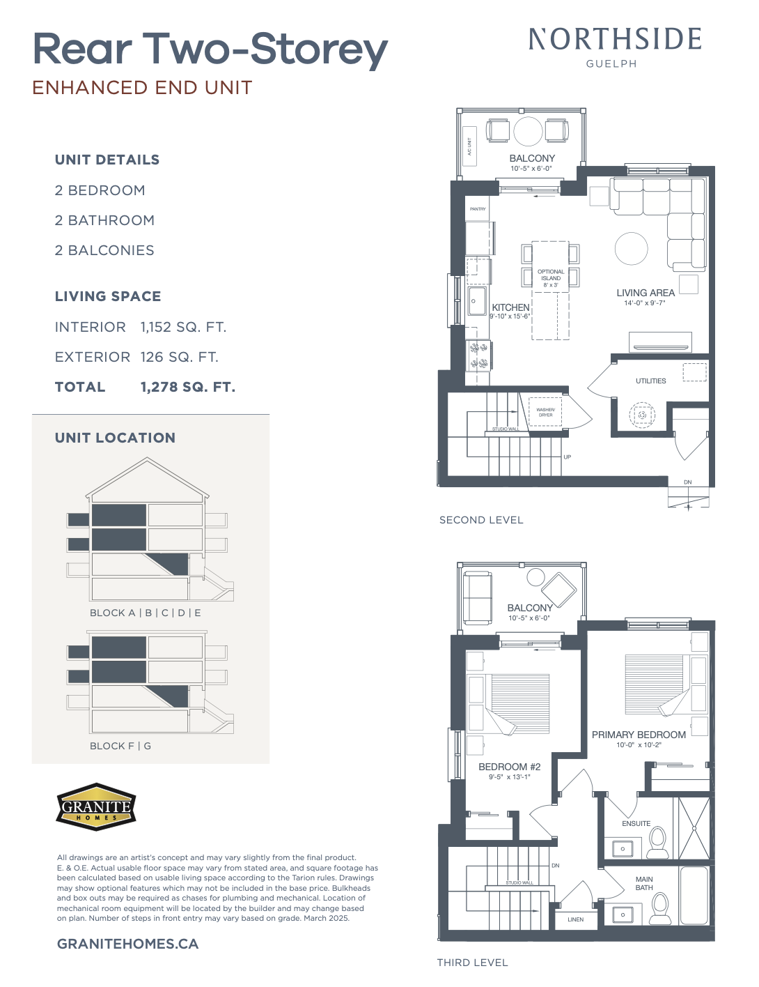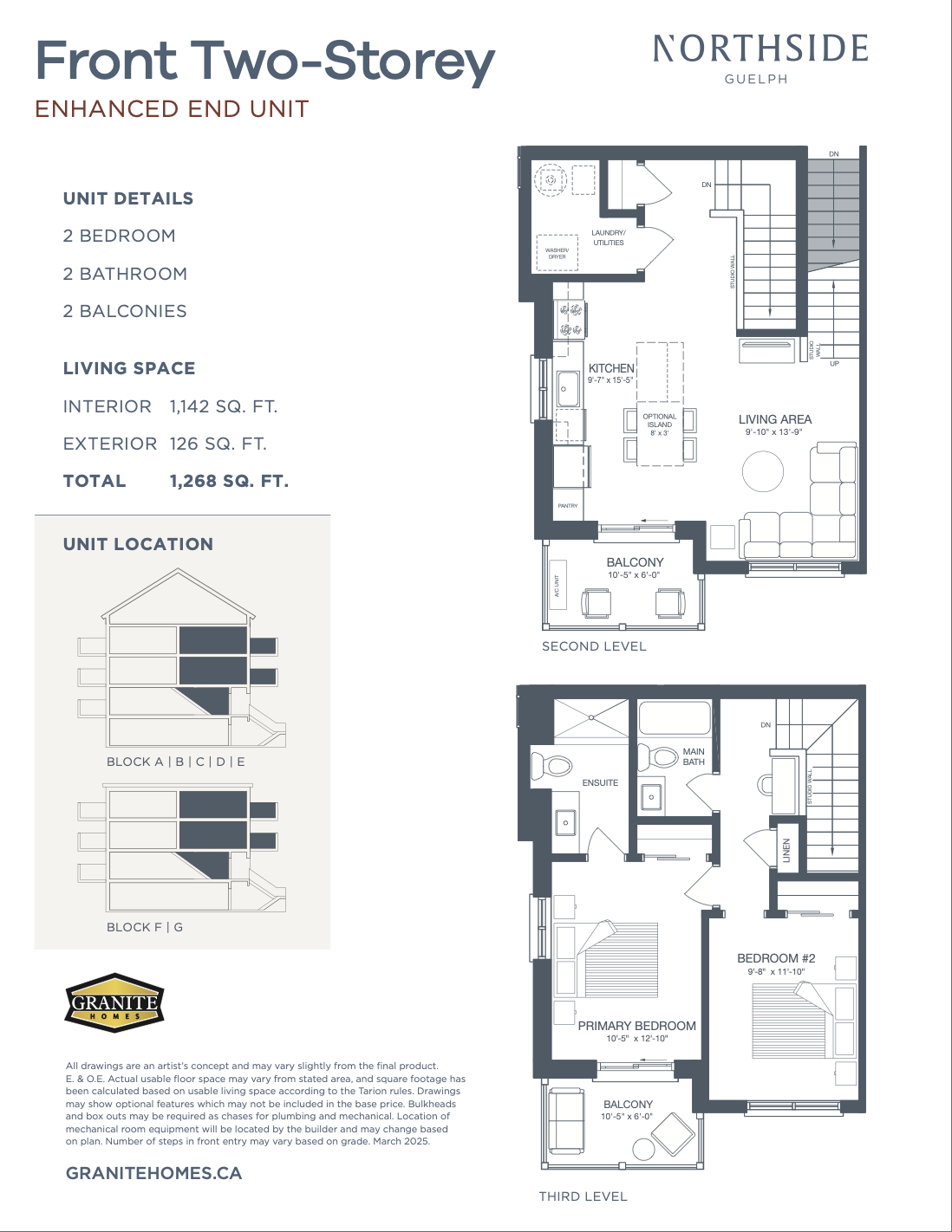 | Front Two Storey Enhanced End Unit | 2 | 2 | 1,268 | - |