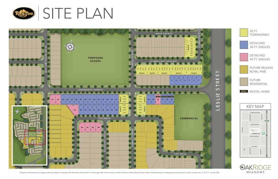 Oak Ridge Meadows is a new townhouse and single family home development by Royal Pine Homes. It's a collection of towns, 38' & 45' lots surrounded by The Oak Ridges Moraine, close to Lake Wilcox Park and Jefferson Forest. Oak Ridge has convenient access to Hwy 404 just a minute away as well as Gormley Station. The project is estimated to be completed on 2024 and will be located at York Regional Road 14 & Leslie Street, Richmond Hill.