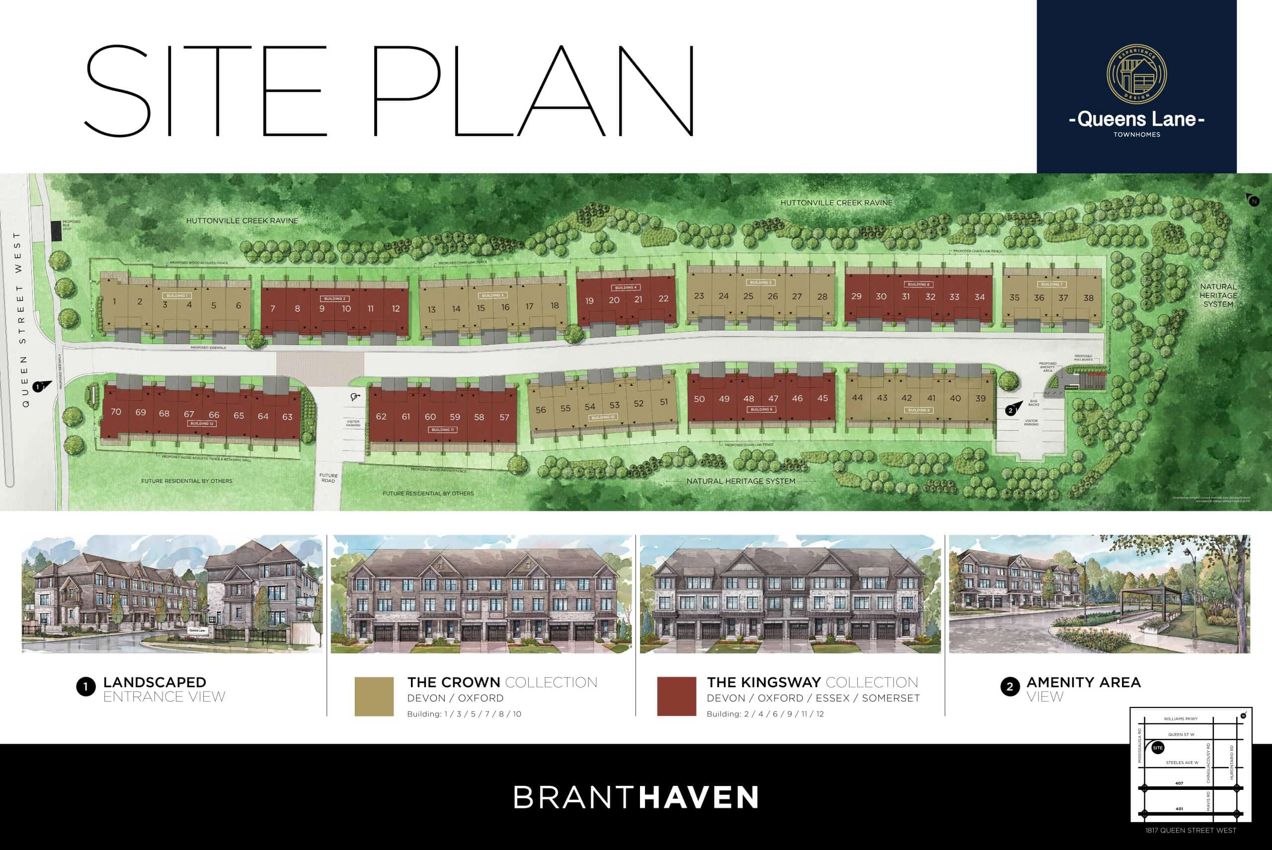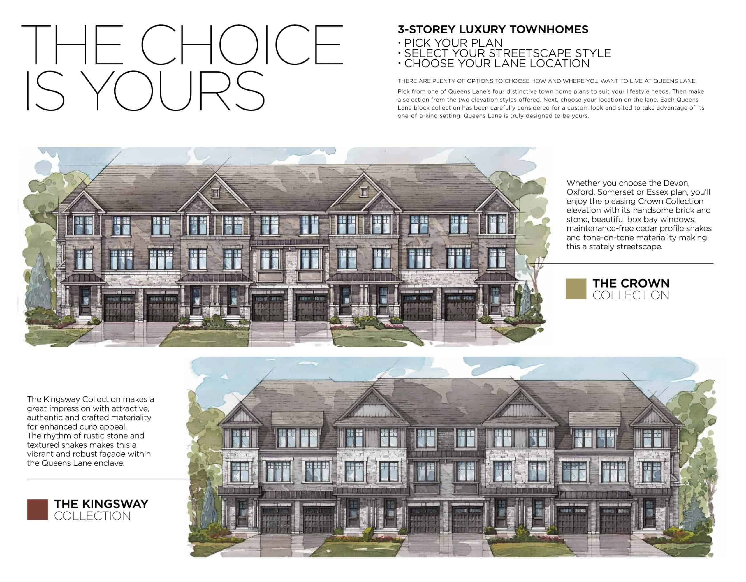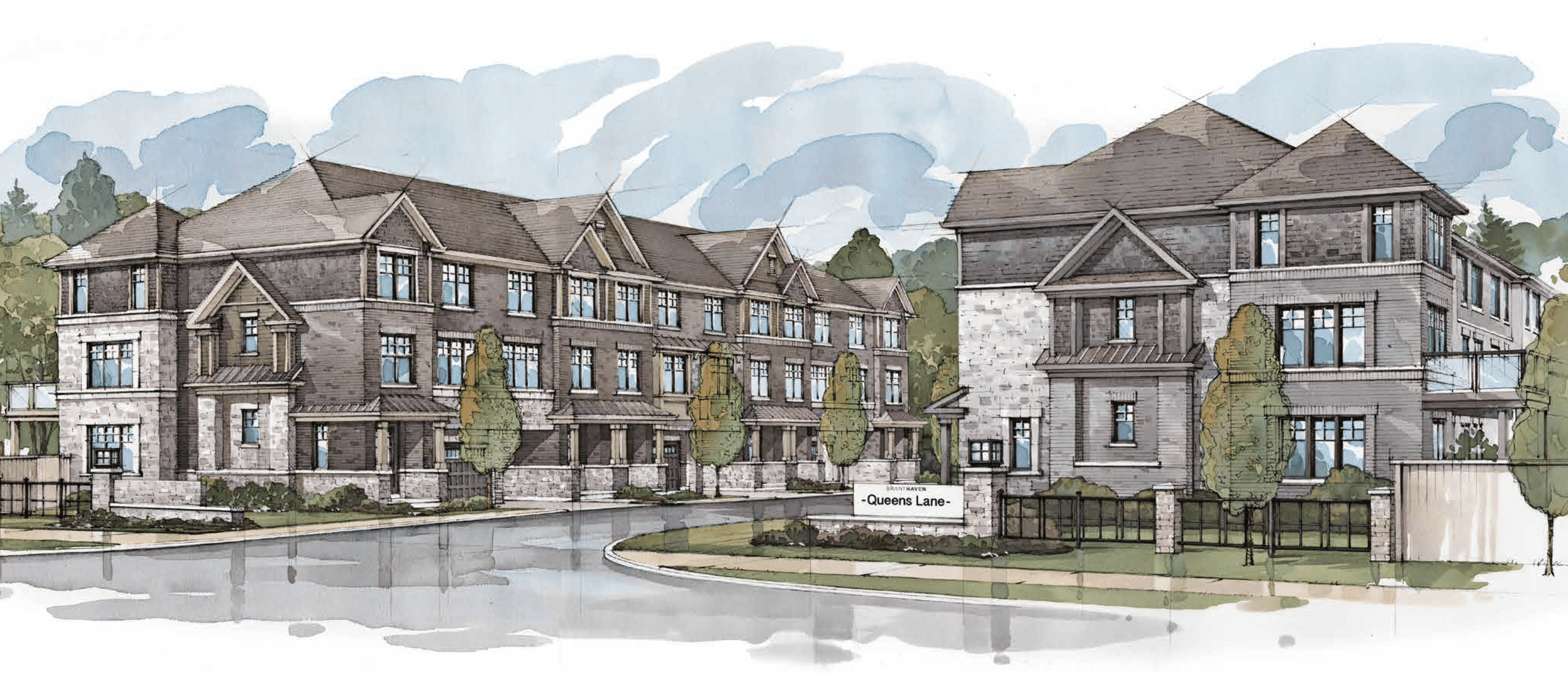 Queens Lane is a new townhouse development by Branthaven. Priced from $1,300,000+ These 3-storey luxury townhouses are nestled in a private lane overlooking Huntonville Creek next to Lionhead Golf and Country Club adjacent to the Estates of Credit Ridge. Queens Lane also has its own private parkette at the natural cul-de-sac. Queens Lane's location provides convenient access to everyday essentials, schools, recreation facilities, family-friendly services. Hassle-free commuting with quick connections to all 400 Series highway access just minutes away as well as the ZUM Transit stop next door connecting residents to the GO Station. The project is estimated to be completed on 2024 and will be located in Queen Street West & Mississauga Road, Brampton.