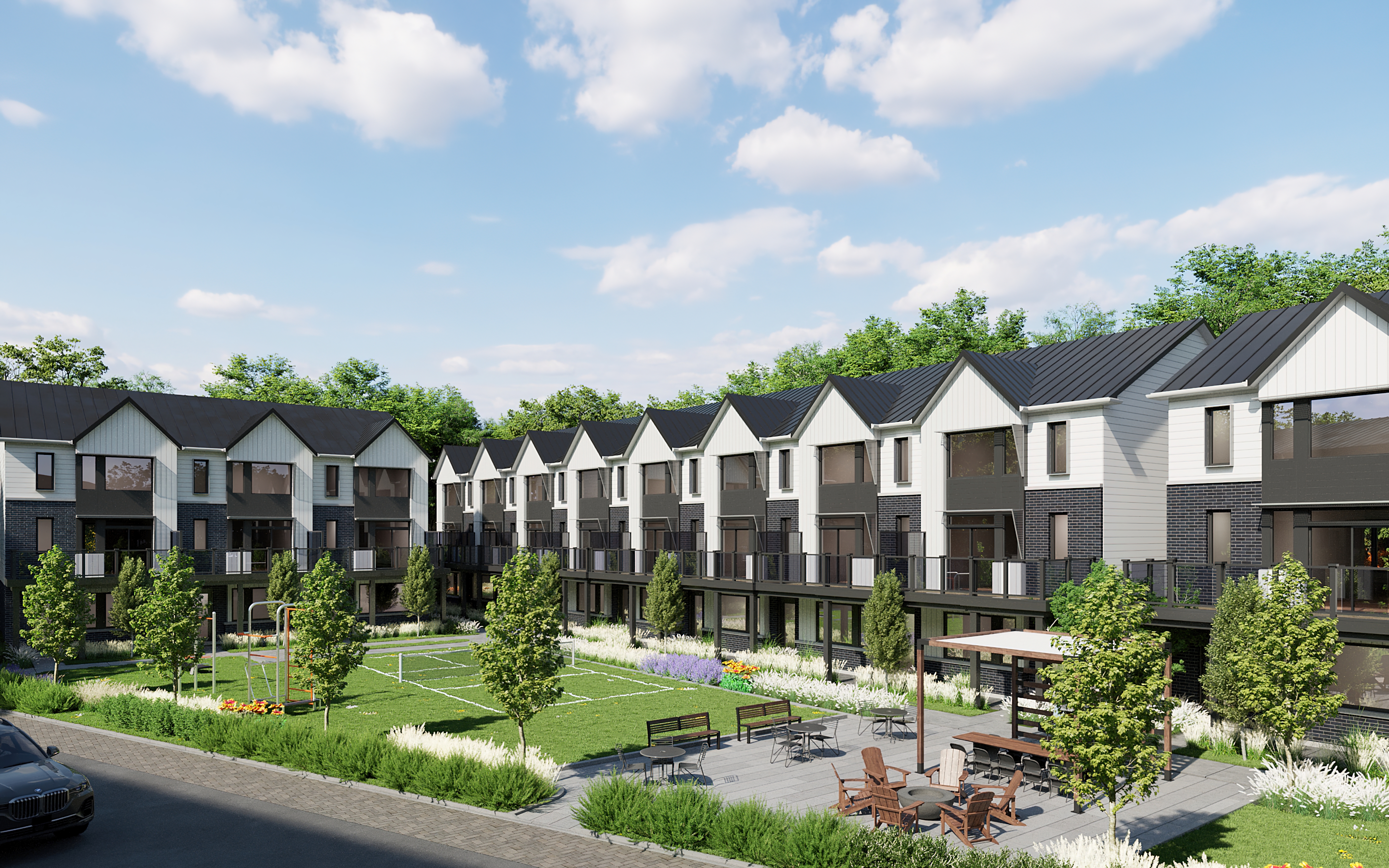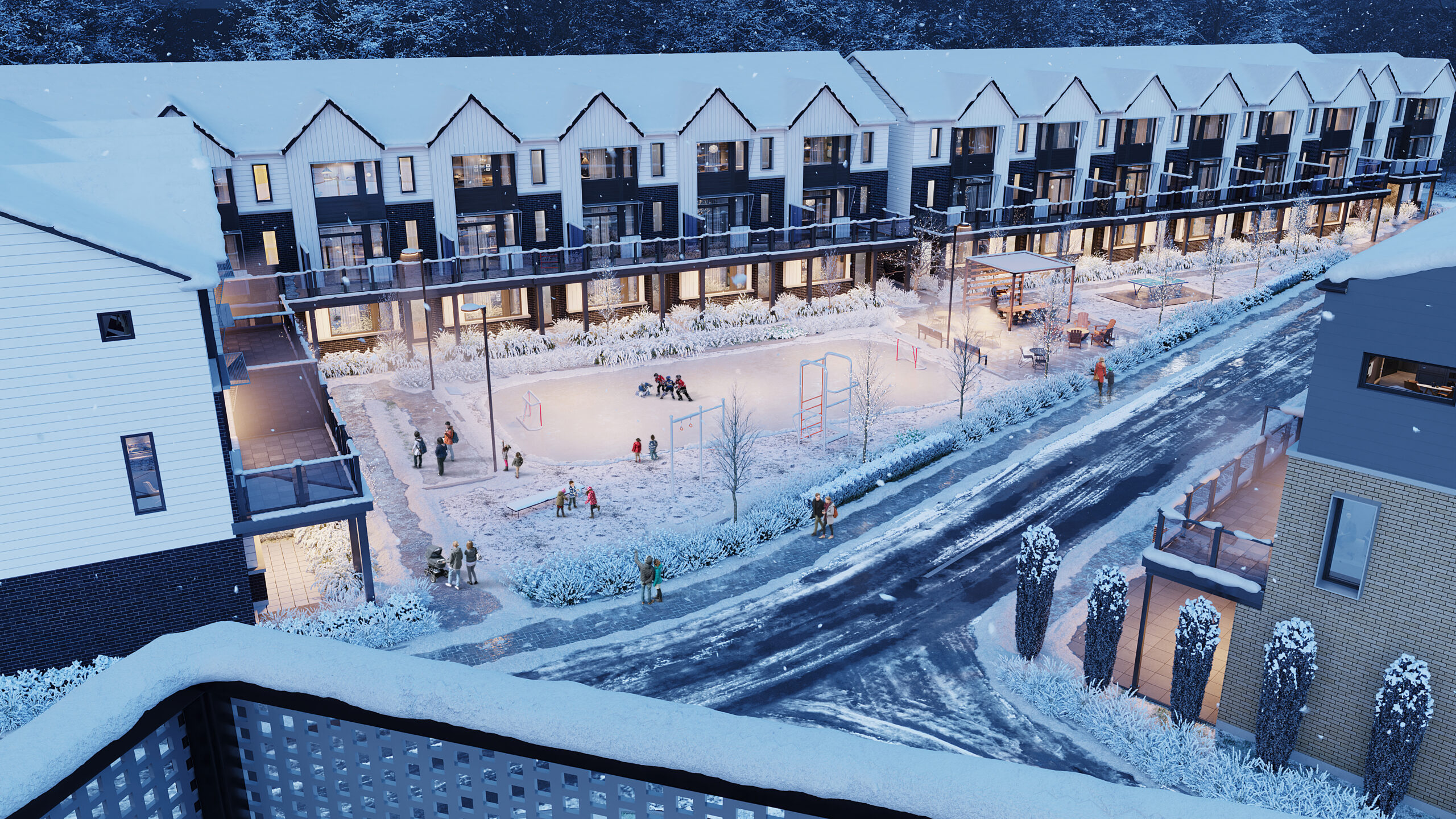 Rainwater at 339 Veterans is a neighbourhood in Barrie that is always changing. It has a lot of fun and amenities. Spend your days with new neighbours at the outdoor meeting area, which features a ping pong court, cozy fire table, and modern arbour in addition to the native landscaping and urban park features. Get your workout in at the urban field and outdoor fitness area, where you can play pickleball in the summer and skate at the outdoor rink in the winter.