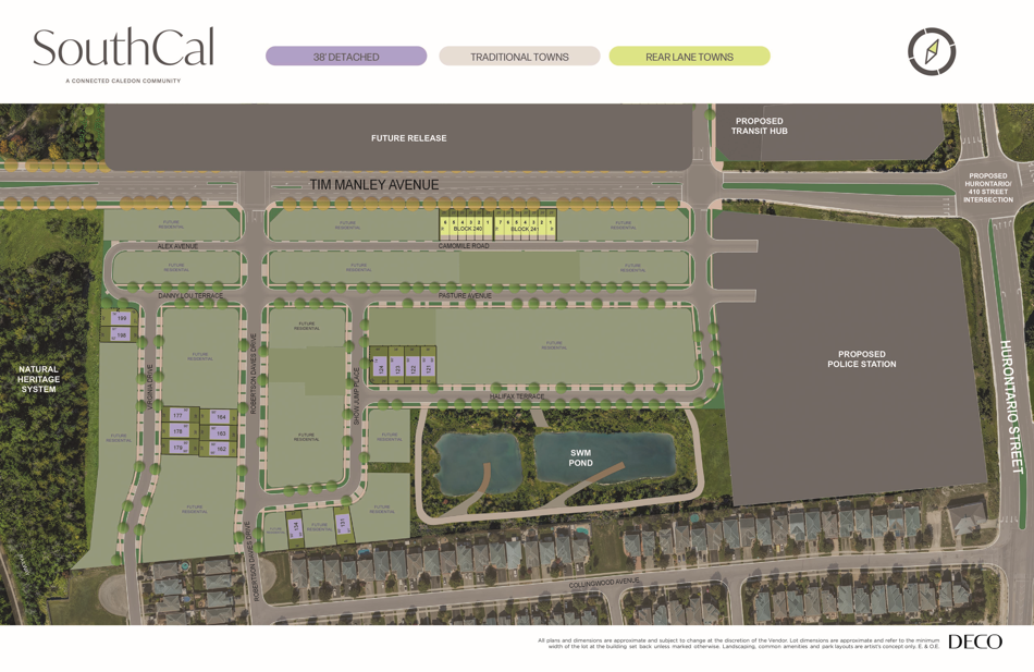 SouthCal is a new freehold townhome and detached single-family home development by Arista Homes, DECO Homes & OPUS Homes. Prices estimated to be starting from $779,990 - $1,189,990. SouthCal is nearby Mount Pleasant GO and the Summer Valley Park, the project is estimated to be completed in 2025 and will be located on Hurontario St & Hwy 410 at the Snelgrove neighbourhood in Caledon.