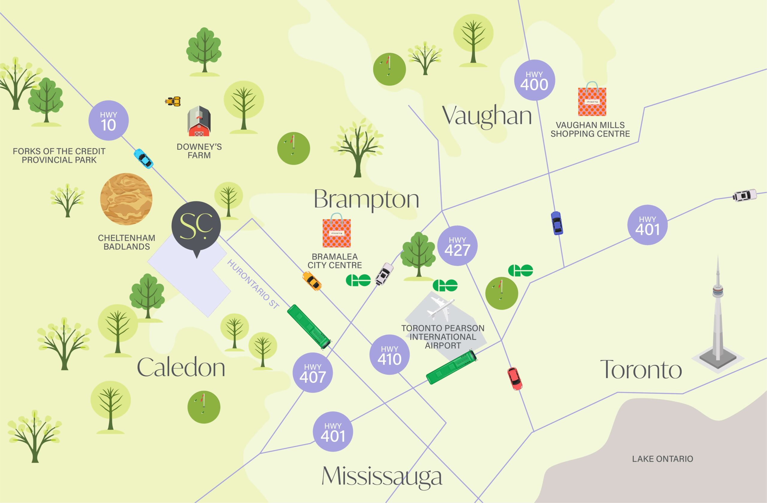 Perfectly positioned in southeast Caledon, SouthCal is redefining what it means to live connected. Nestled just off Hurontario Street and minutes from Highway 410, this vibrant master-planned community offers seamless access to the GTA’s top destinations, making it an ideal choice for commuters, families, and modern lifestyle seekers alike.