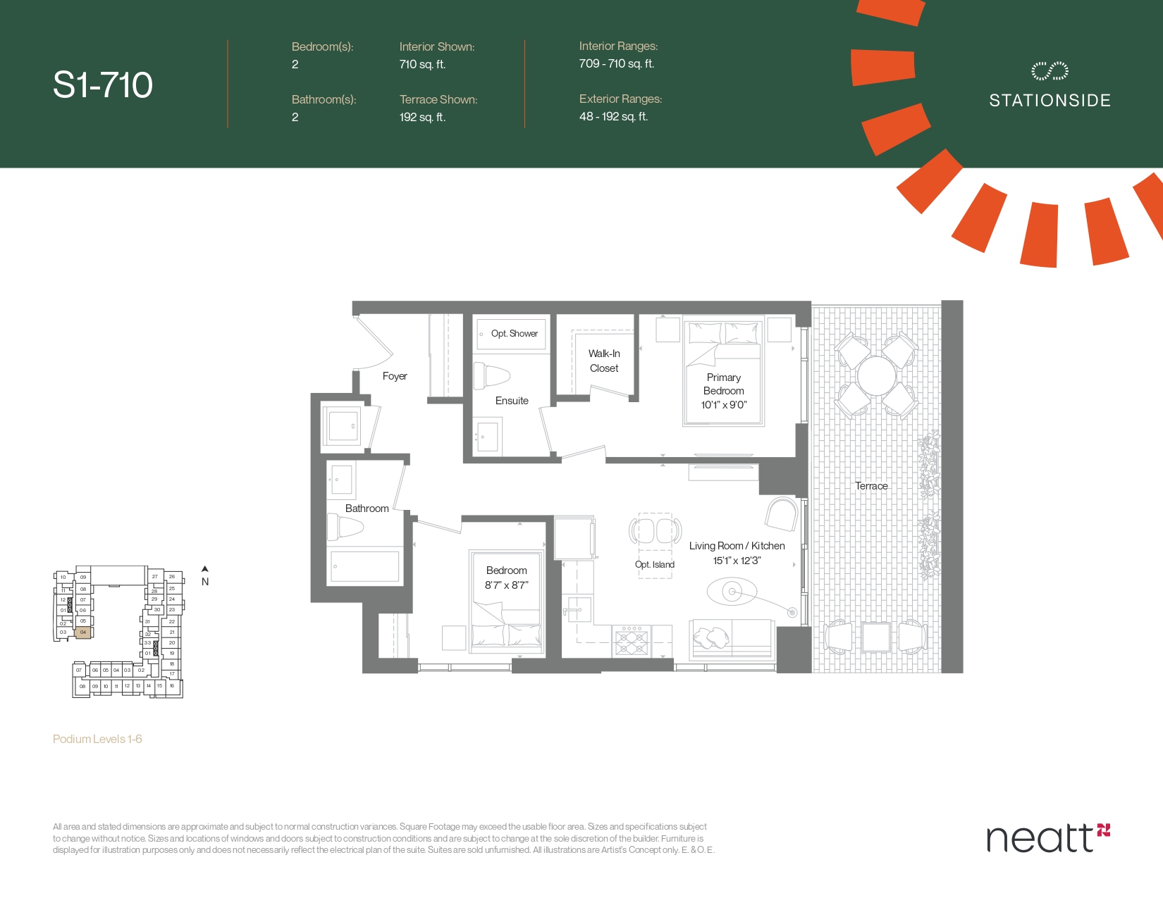 | Plan | Suite Name | Suite Type | Bath | SqFT | Price | Terrace | Exposure | Availability | |