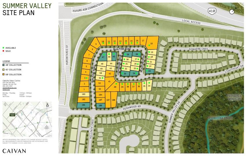Summer Valley is a new detached single-family home development by Caivan. Prices estimated to be starting from $1,300,000. Summer Valley is nearby Mount Pleasant GO and the Heart Lake Conservation Park, the project is estimated to be completed in 2026 and will be located on Hurontario Street & Ontario 410 at the Caledon neighbourhood in Caledon.