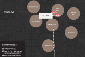 The Hill is a new high-rise development by Metropia. Prices estimated to be starting from $500,000 and will feature 406 units at 39 storeys. The Hill is nearby David A. Balfour Park, Glenn Gould Park and Lionel Conacher Park and the Summerhill Subway Station, the project is estimated to be completed in 2026 and will be located on 1406 Yonge St at the Deer Park neighbourhood in Toronto.