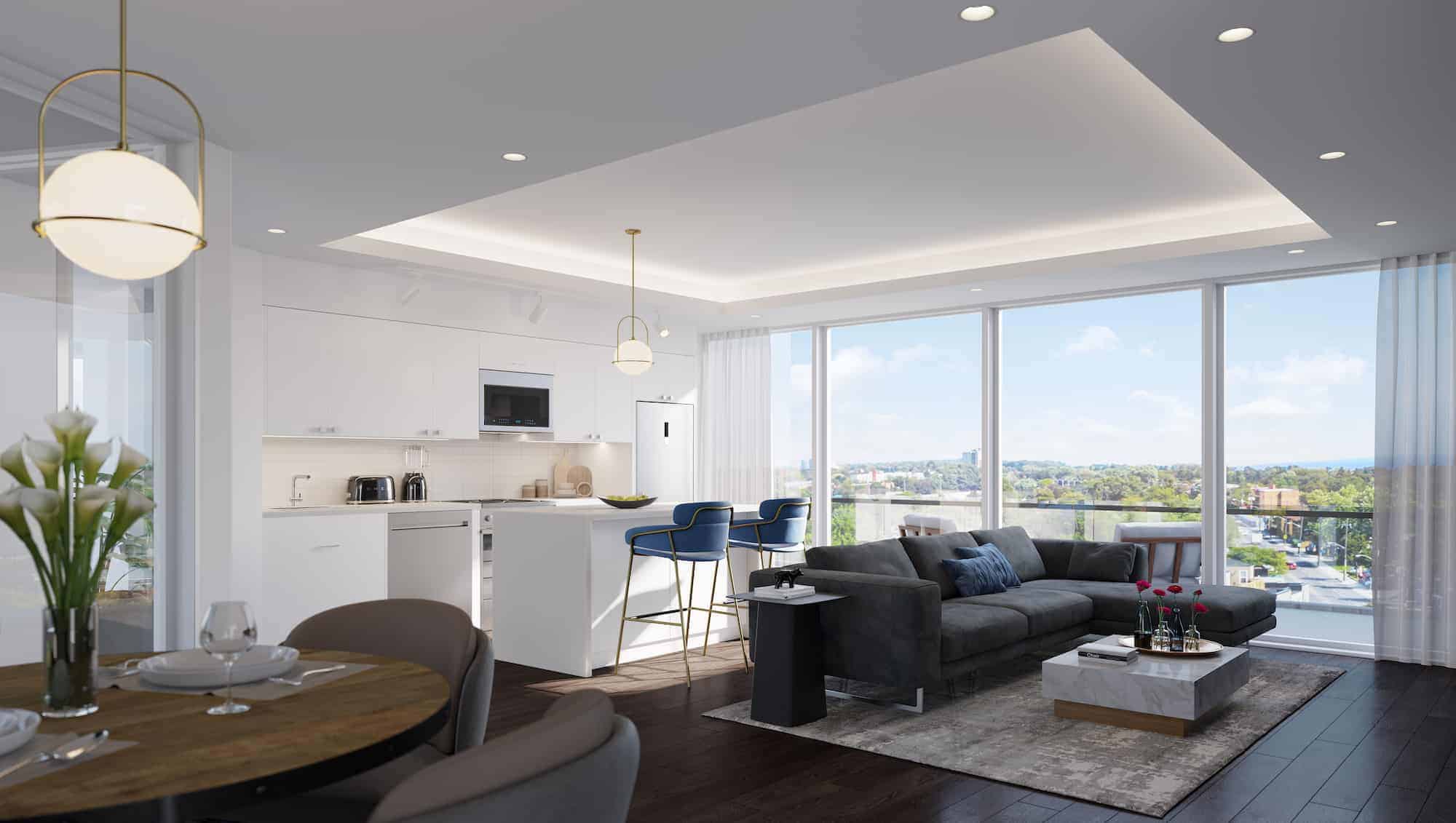 The Manderley perfectly blends the vibrancy of city life with the serenity of nature. Located in East Toronto’s historic Birch Cliff neighbourhood at Manderley Drive and Kingston Road, this boutique condominium offers exceptional access to both urban excitement and natural beauty. Enjoy the building’s luxurious amenities, local dining, shopping, and quick access to parks and the lakefront—all just minutes away.