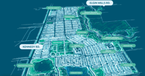 Unionglen is a new freehold townhome and single-family home development by Greenpark Group. Prices estimated to be starting from $1,000,000. Unionglen is nearby Mount Joy GO Station and the Bruce’s Mill Conservation park, the project is estimated to be completed in 2026 and will be located on Kennedy Road & Major Mackenzie Drive East at the Cachet neighbourhood in Markham.