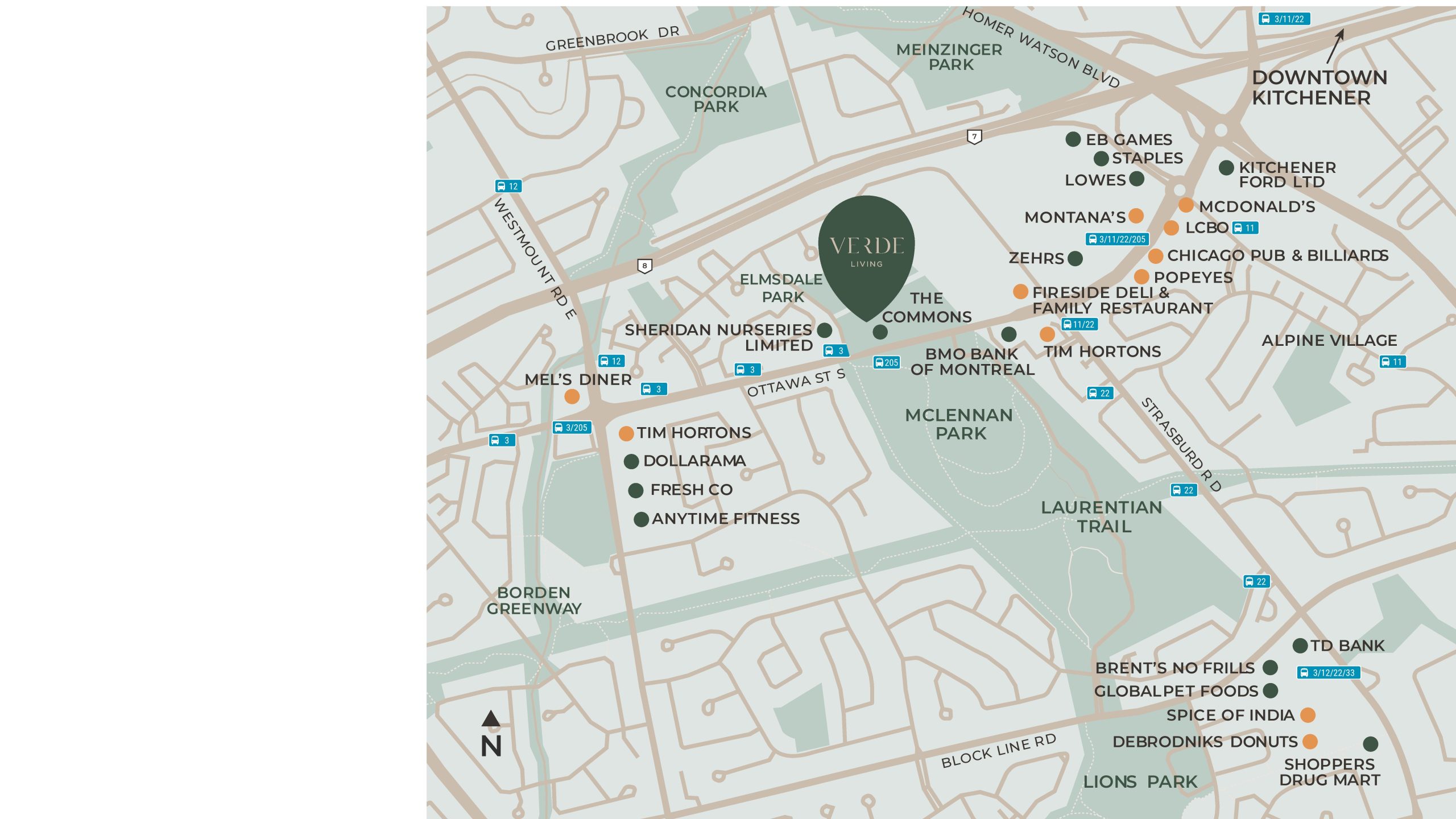 Verde Living is a new condo development by JD Development Group and Downing Street Group. Soon to rise at the Laurentian Commons in Kitchener featuring 266 units at 8 storeys. Verde Living is nearby McLennan Park - a green space on a former landfill with trails, a skate park, playground & splash pad, and dog park. The project is estimated to be completed on 2025 and will be located in 83 Elmsdale Drive, Kitchener.
